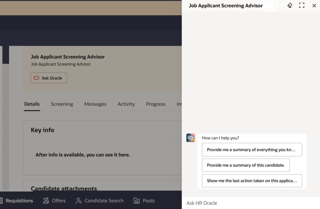 A common fear is that AI will start rejecting people autonomously. Oracle has built this with a “Human in the Loop” philosophy. The AI provides the advice and the summary, but the recruiter still makes the final call on who moves to the next stage. It’s an assistant, not a replacement.